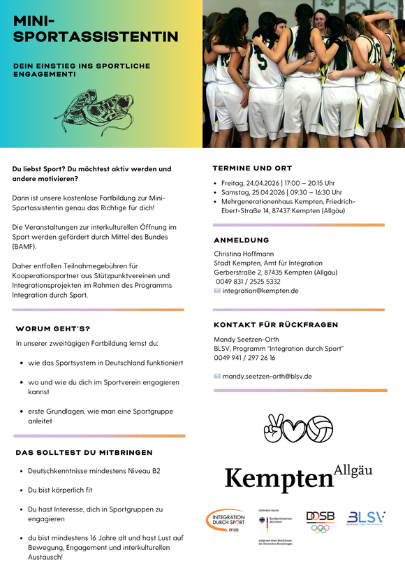 Kostenfrei Anmeldung unter intergration@kempten.de. Flyer im Anhang.