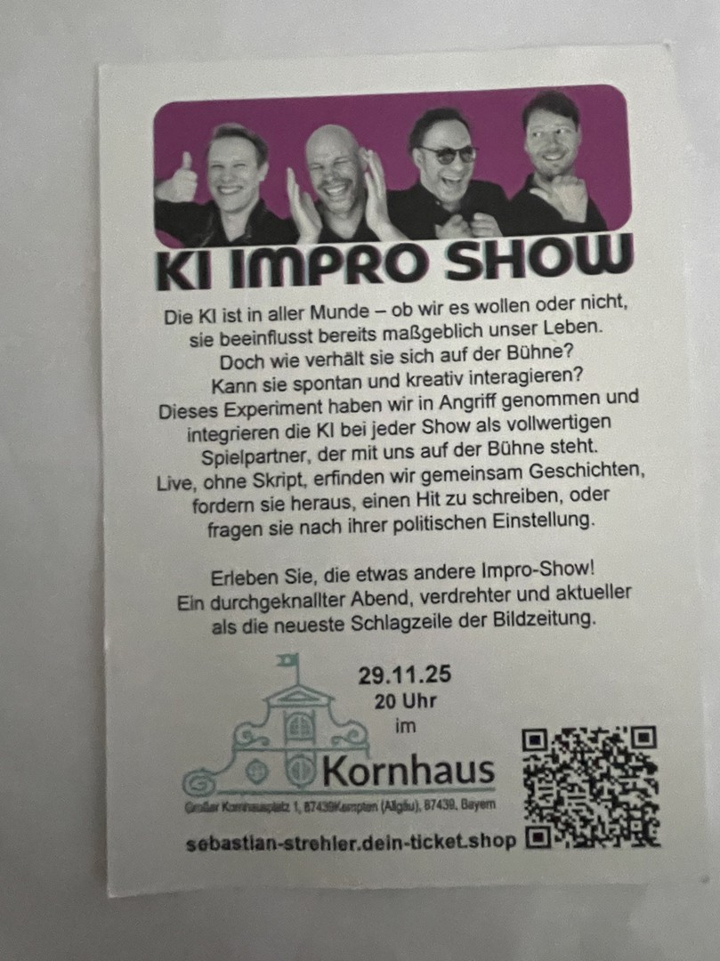 Sa, 29.11.2025, 20:00 Uhr: KI Impro Show.